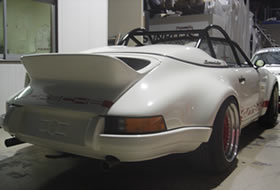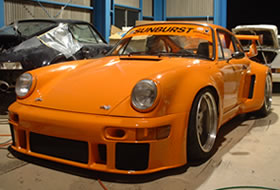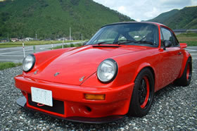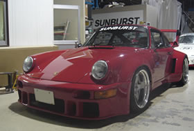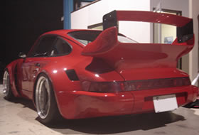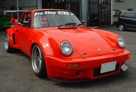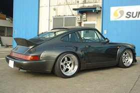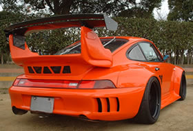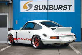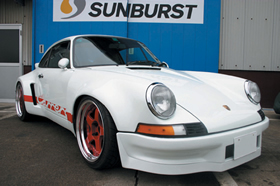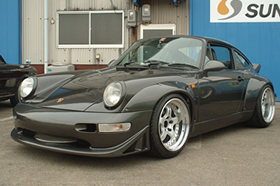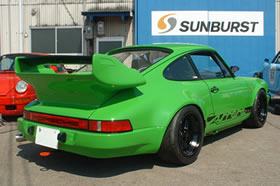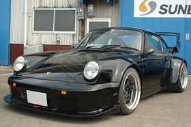 サンバーストRSRタイプFフェンダー、Rフェンダー、FRPボンネット、FRPドア、934タイプFバンパー加工、964GT2タイプRバンパー加工、ワンオフサイドロッカー、9Pフル溶接ロールゲージ、ホイル(ワーク)、全塗装、キット化予定