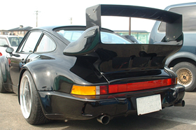 SUNBURST GT2タイプリアウイング+ワンオフカーボンテンションプレート TETU F.Rバンパー サイドロッカー ラフウェルトスタイル F.Rフェンダー 延長ロアアーム マフラー加工 SSRホイール ホイルスペーサー ターボタイロット 964ブレーキキャリパー 全塗装